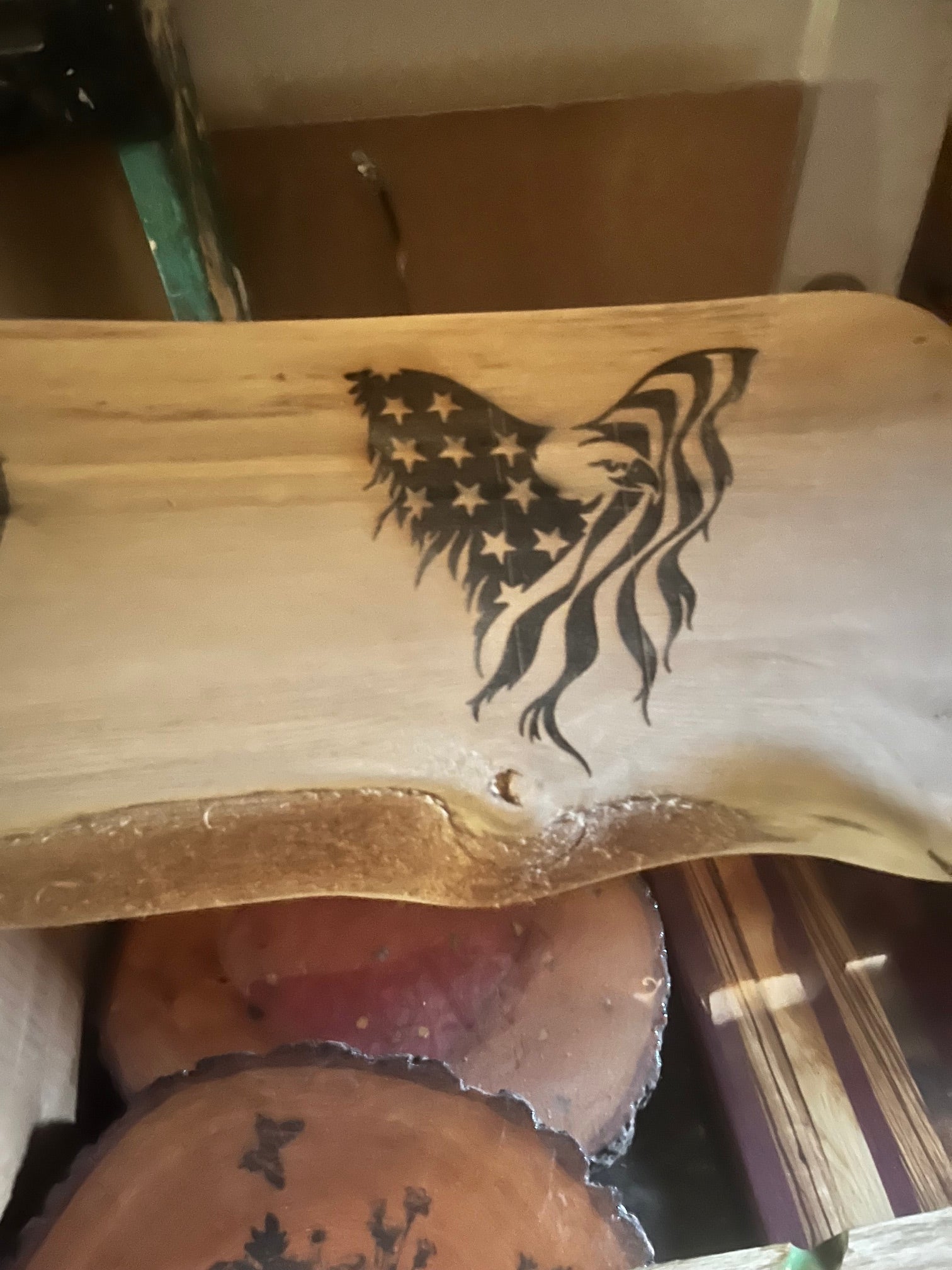 Live Edge Wood Home Rustic Wall Hangining with Eagle Flags