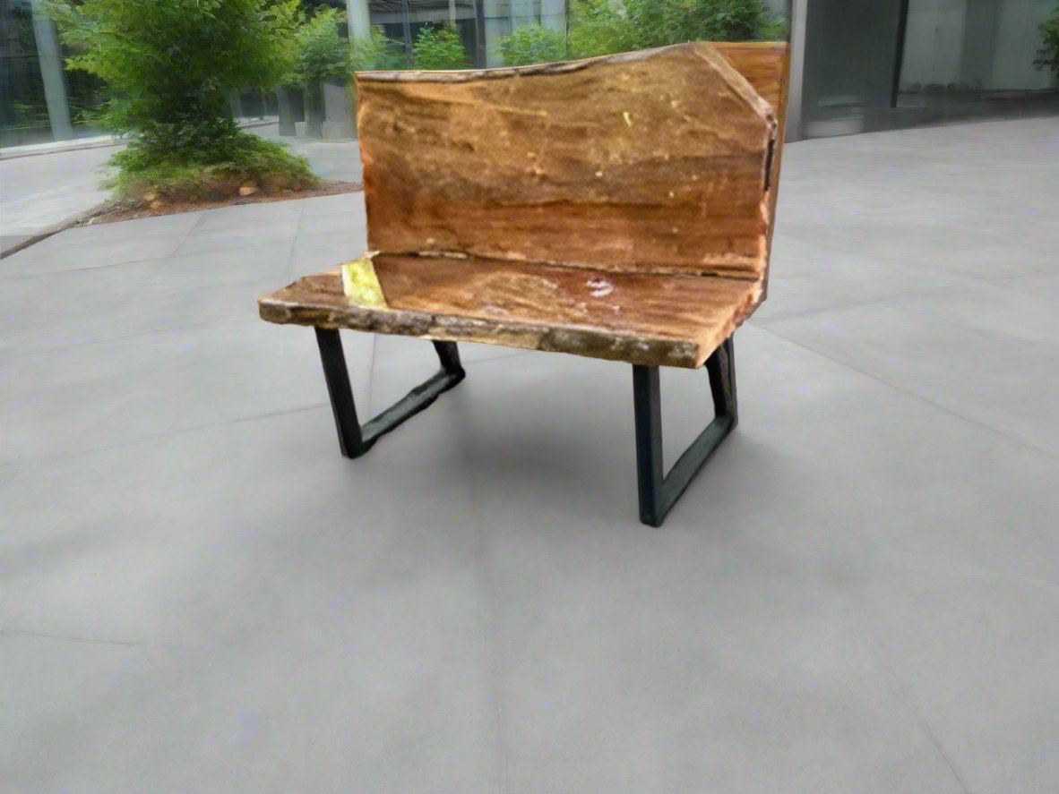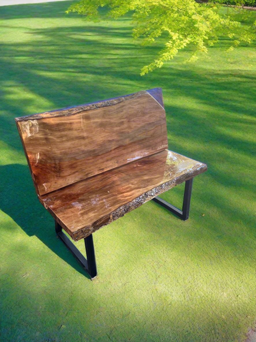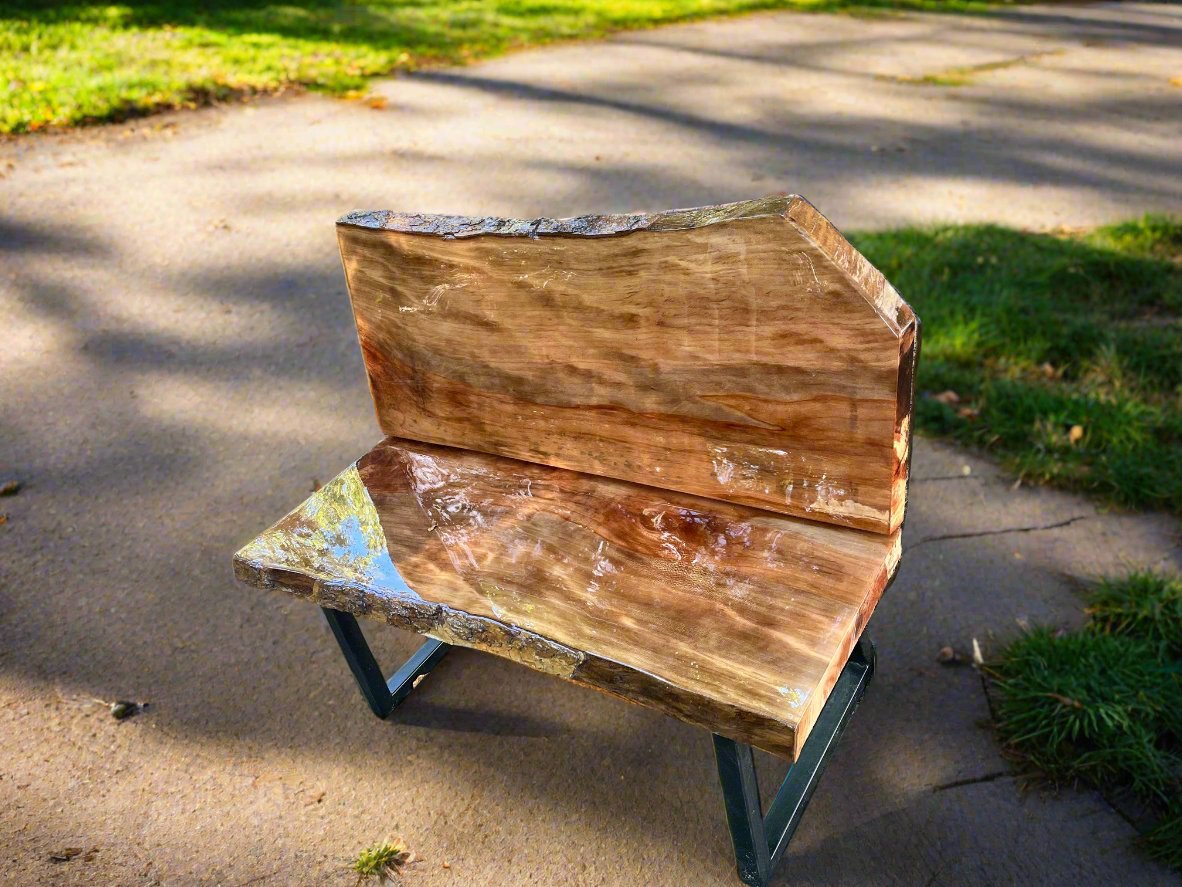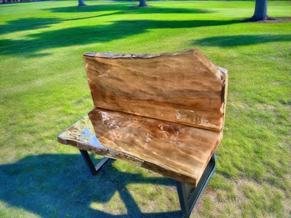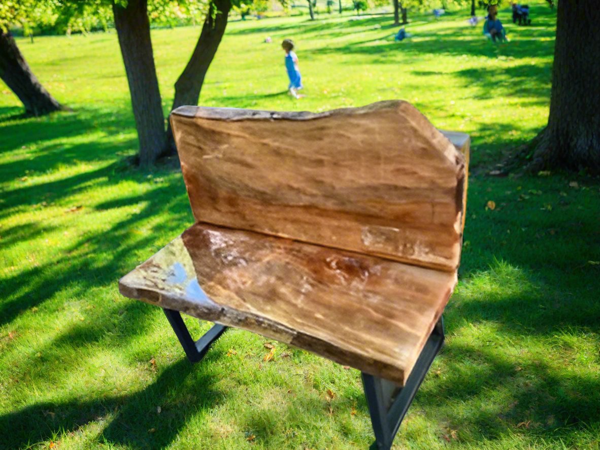Hickory Park Bench Measuring 44" wide 18" seat height. Epoxy coated Metal black legs. Awesome looking one of a kind Park Bench