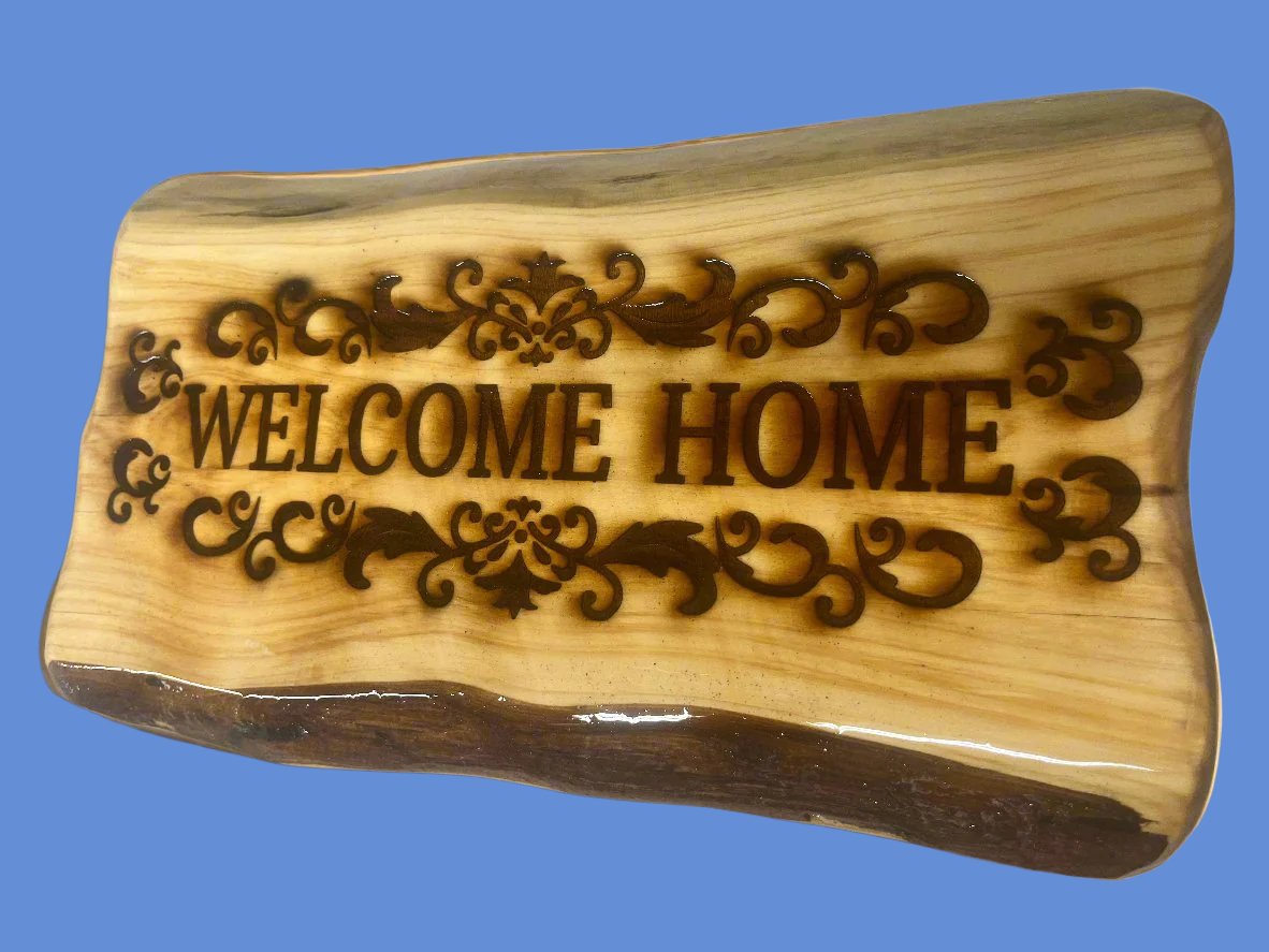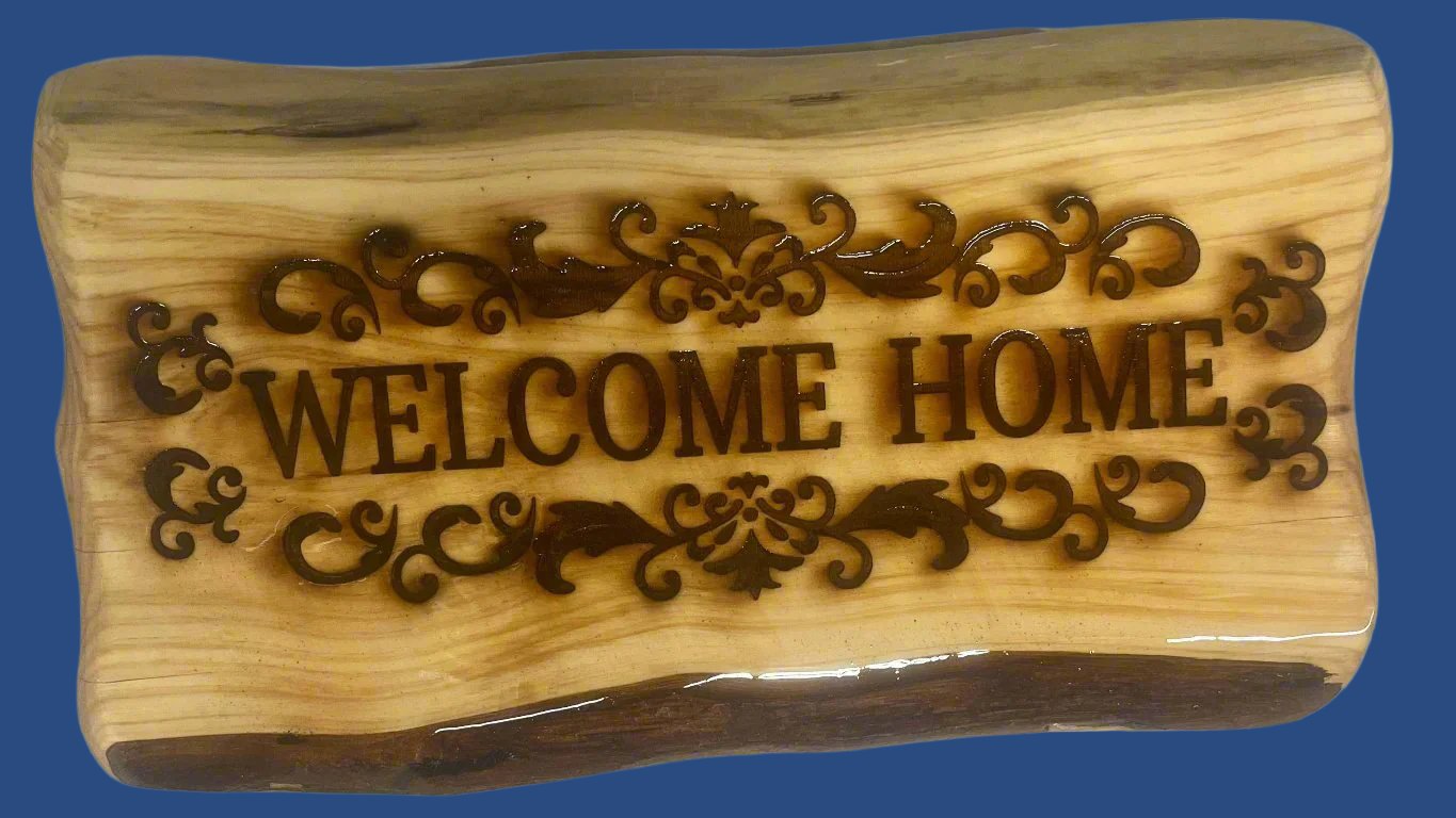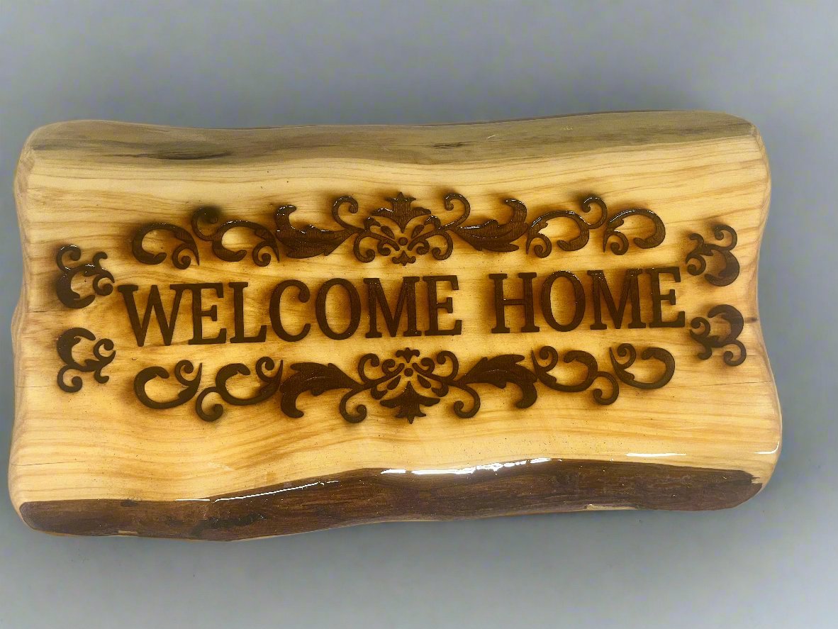 Welcome Home Wood Plaque with Epoxy Covered Scroll Work